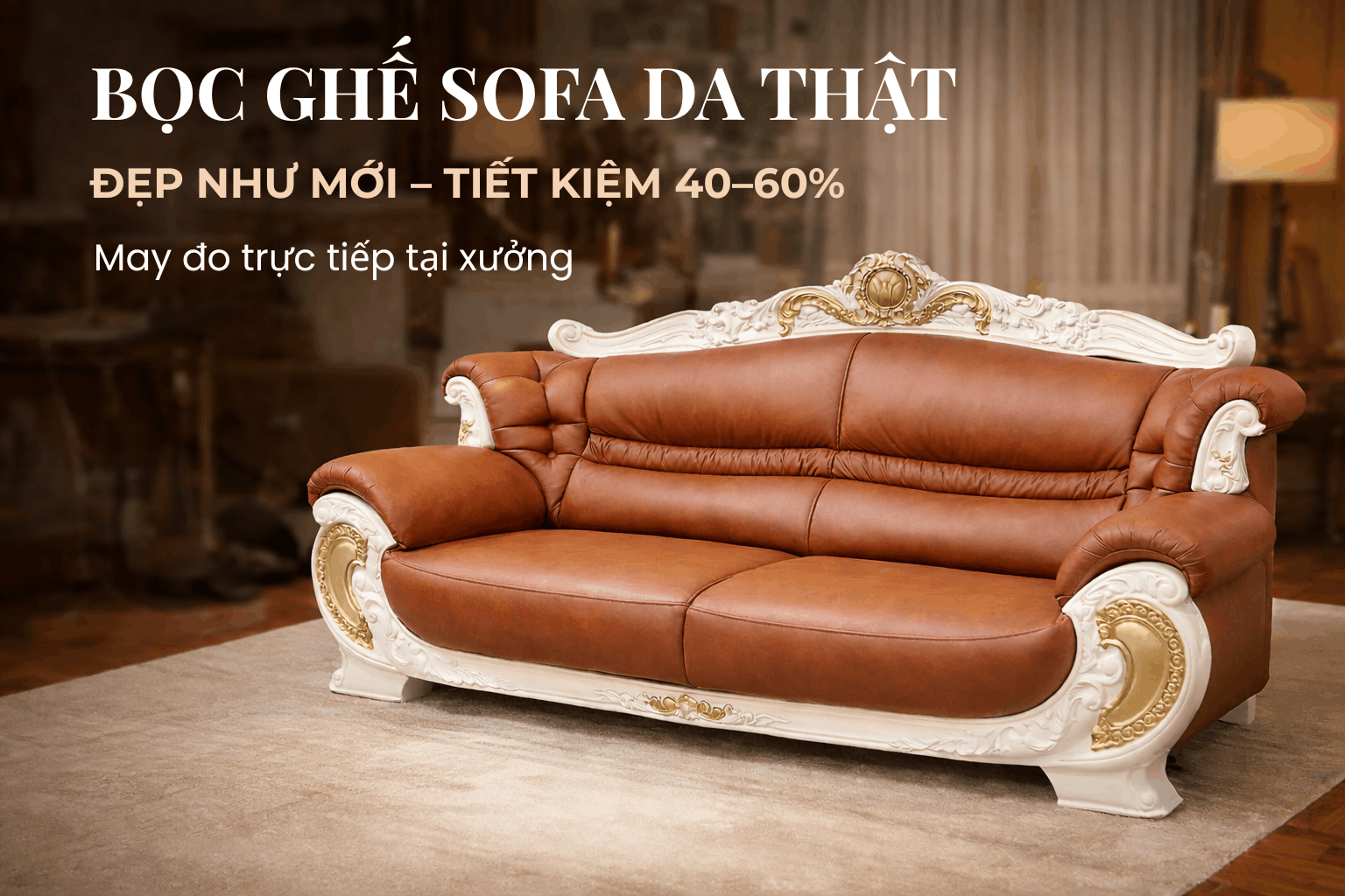 🛋️ Bọc lại ghế sofa da thật giúp làm mới hoàn toàn sofa, giữ nguyên khung ghế chắc chắn và tiết kiệm đến 40–60% chi phí so với mua mới.
